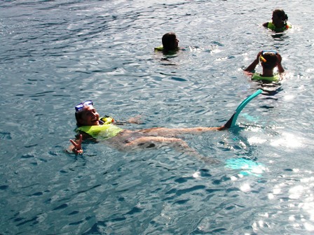 ...e poi sul reef con acqua profonda dove oltre a pinne e maschera, abbiamo anche il giubbetto