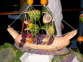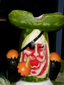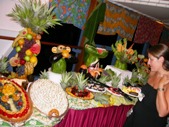 Il buffet di dolci e frutta è ovviamente preso d’assalto: sono bellissime le sculture di frutta e verdura: una nave con zucca e anguria!