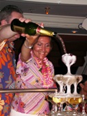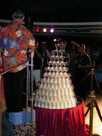 Corriamo al Tahitian Lounge: sta per iniziare la cascata di champagne.. Michela fa la foto con il maitre mentre si arrampica per riempire la piramide di bicchieri!